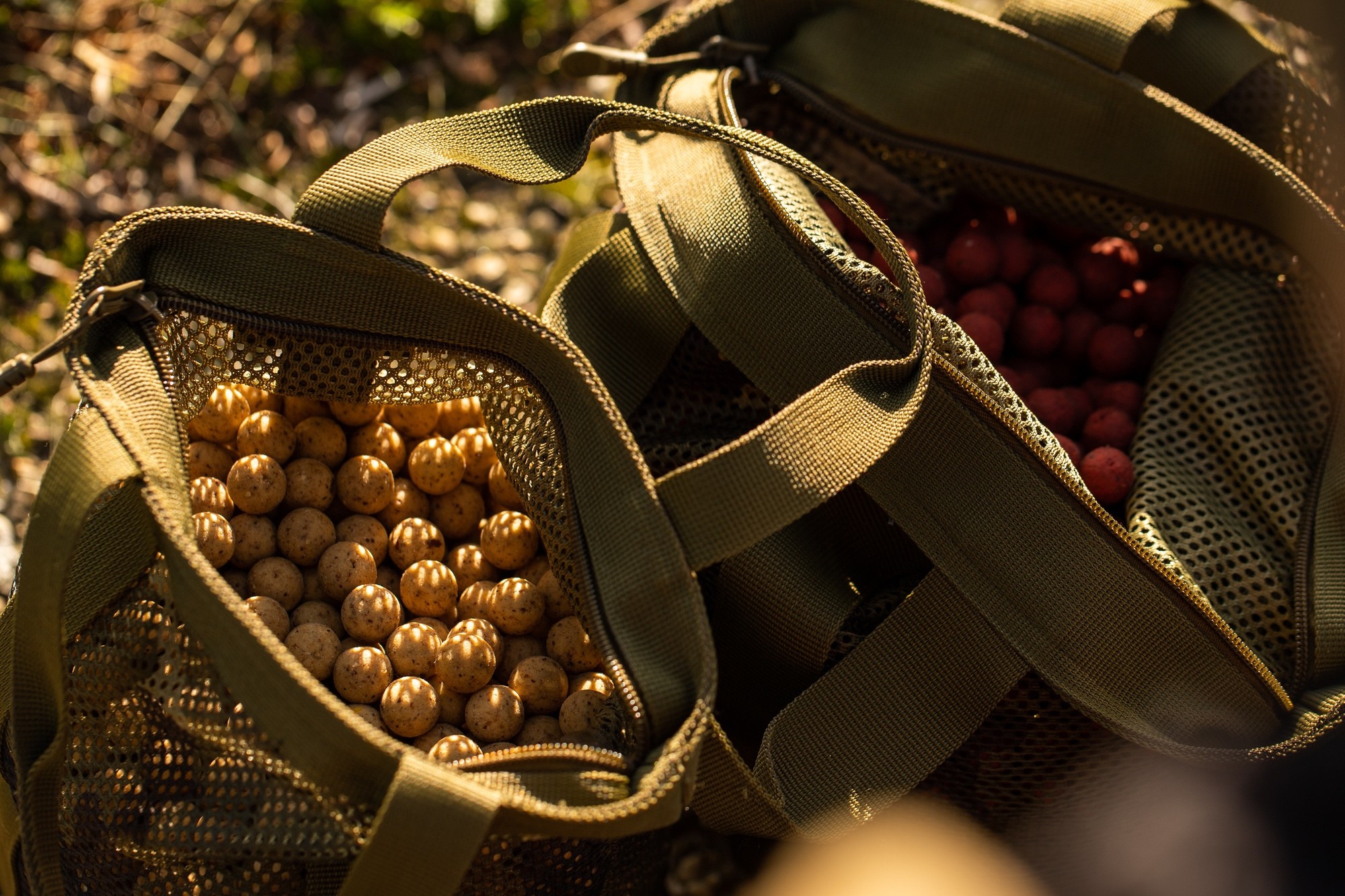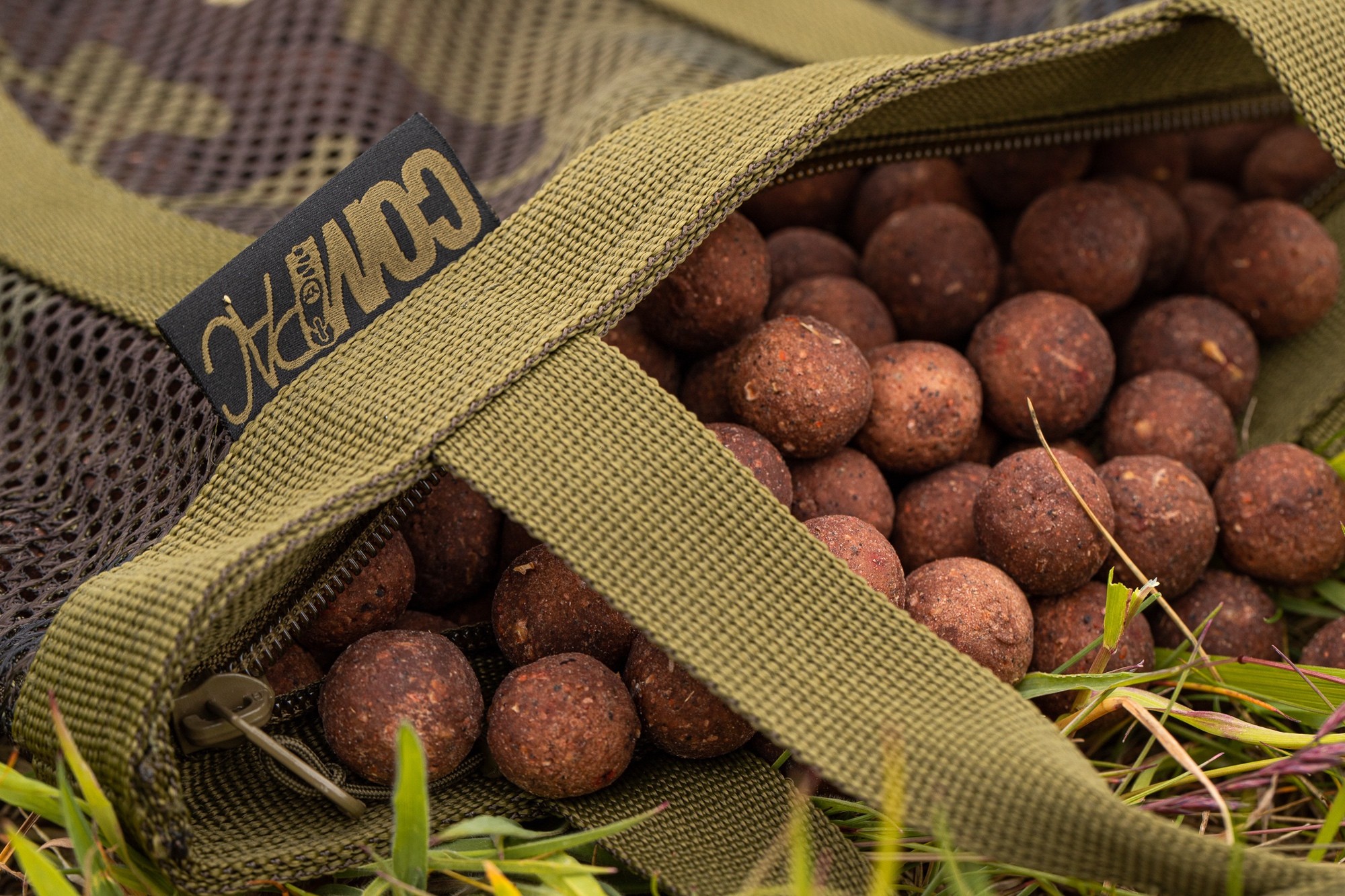 These bags are purpose-made for air drying your boilies, especially when fishing longer sessions in hot weather and trying to keep your bait from going off. They have strong webbing style handles of a size that makes them easy to carry, and to hang from a tree or similar, whilst the baits are drying. The bag is made from a tough, camo mesh which won’t easily tear even if it becomes snagged on something, and this allows plenty of airflow around your baits (unlike the bags that boilies come supplied in which makes them sweat and go off more quickly) – just be careful not to overfill the bags and to give them a shake every now and again. The top of the bag is secured by a zip to prevent any chance of spillages, and also to provide a wide opening to make the Compac Air Dry Bags easy to fill with boilies – either straight out of the plastic bag they come in, or poured in via a bucket. Two different sizes are available, depending on the length of your session and how much bait you are using – small will hold up to 3kg; large will hold up to 6kg.